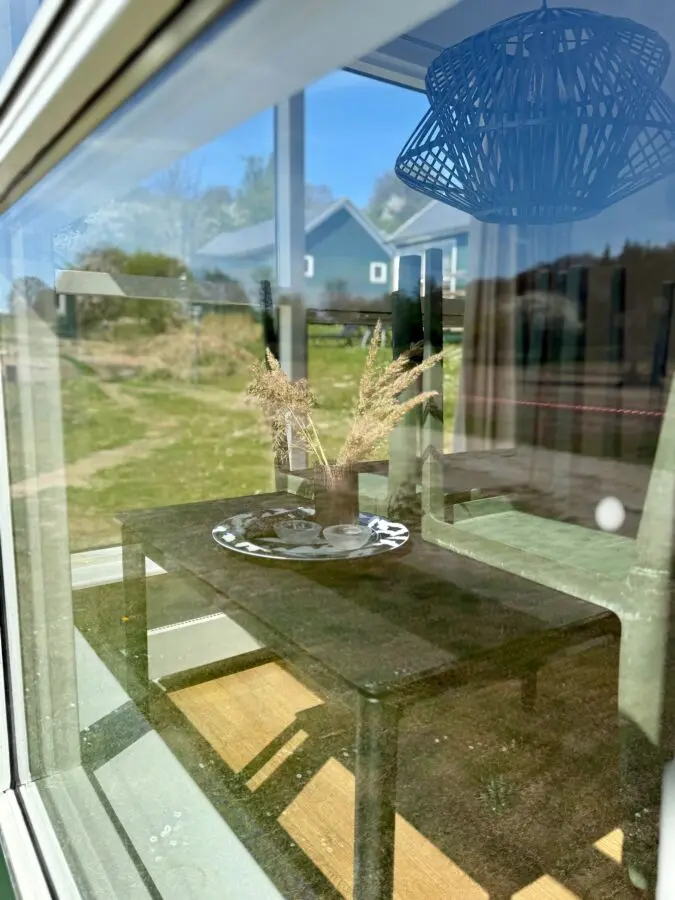 Træveranda med udsigt over campingpladsen