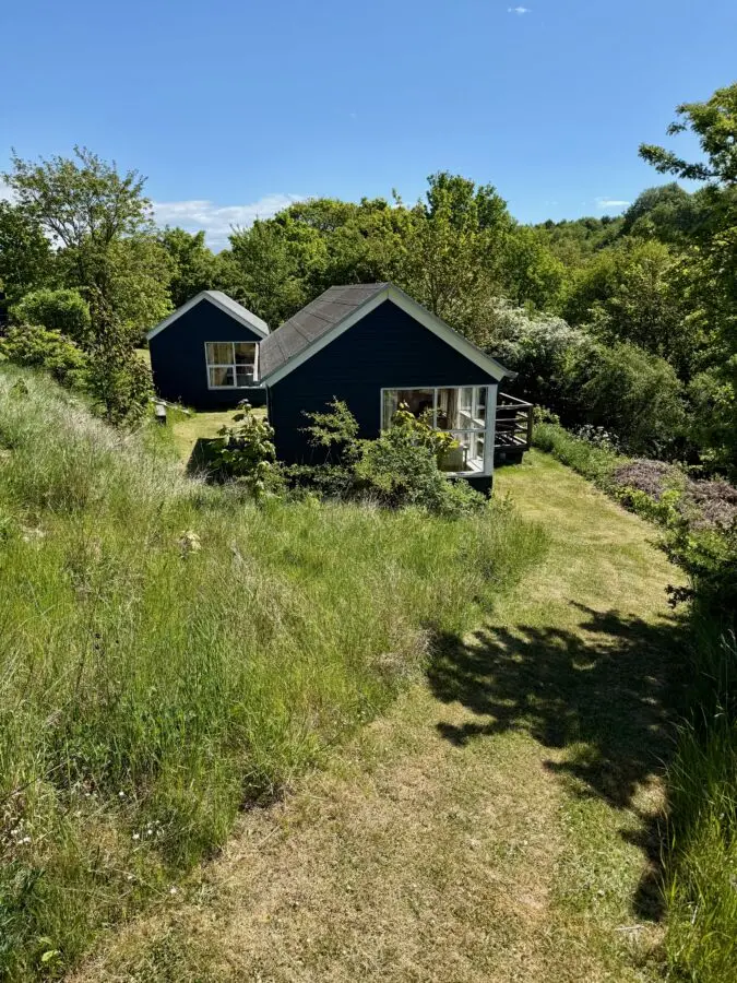I Bakkehytten har du al det, du har brug for – en træ veranda, som du kan nyde udsigten over campingpladsen fra, brusebad, toilet, køkken, stue mm.