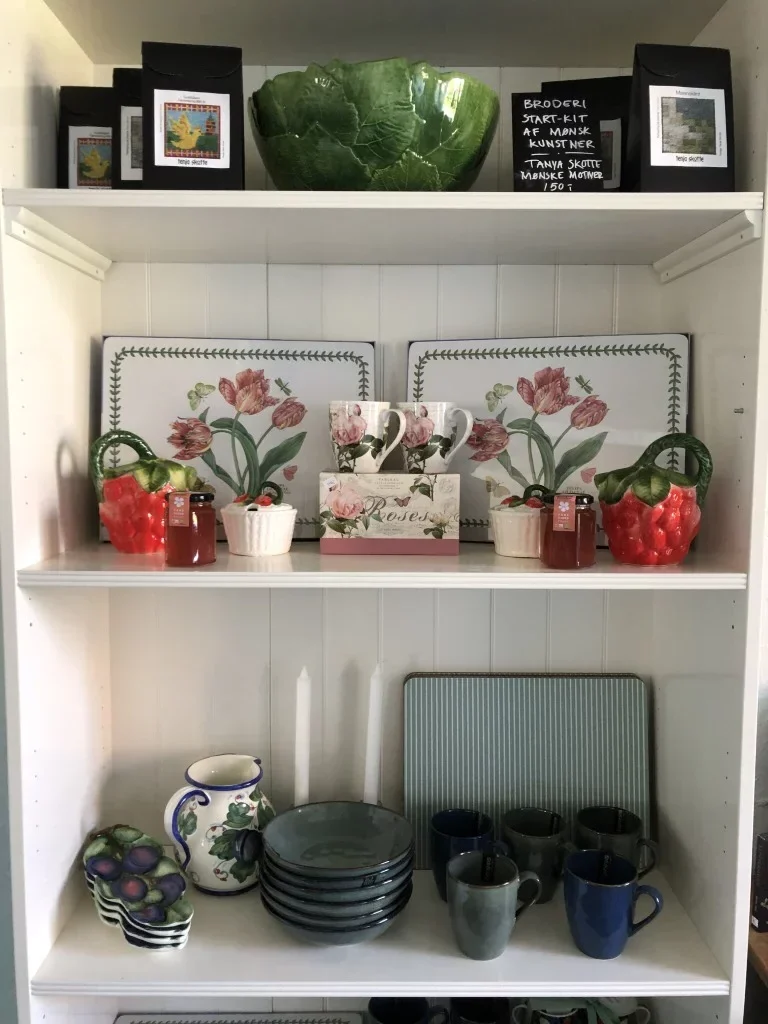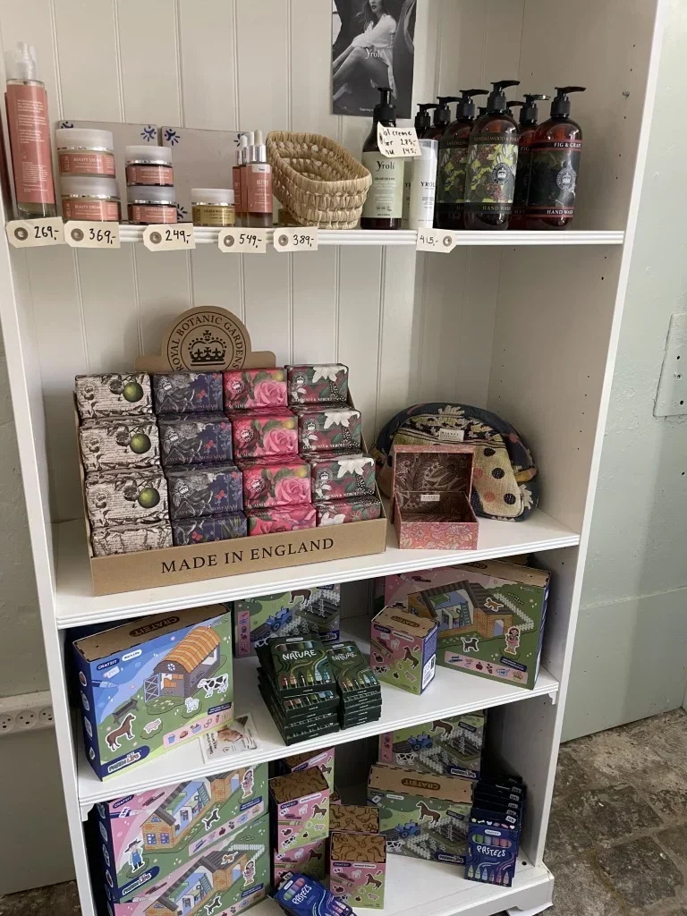 Samtidig byder butikken på et nøje kurateret udvalg af designprodukter og livsstilsvarer fra Møn og Østmøn. Her finder I keramik, tekstiler, papirvarer og interiør fra nogle af områdets dygtigste kunsthåndværkere og skabere – alt sammen valgt med blik for æstetik, holdbarhed og fortælling.