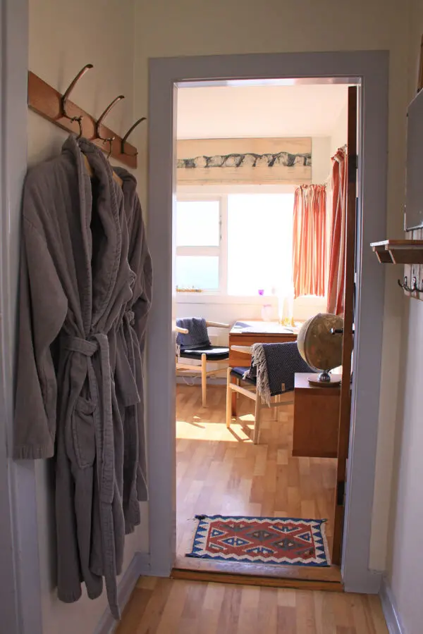 Når I lejer Fyrhytten, er sengelinned, håndklæder, badekåber og en flaske bobler inklusiv i opholdet. I huset finder i et lille køkken og toilet, og der er udendørs badekar og bruser.